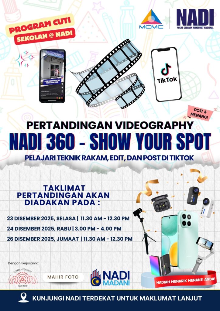 Sebarang maklumat terkini program di NADI boleh rujuk kepada Media sosial NADI dan Portal NADI kami :